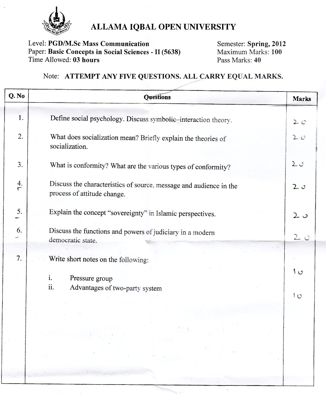 Paper: Basic Concepts in Social Sciences – II (5638)
